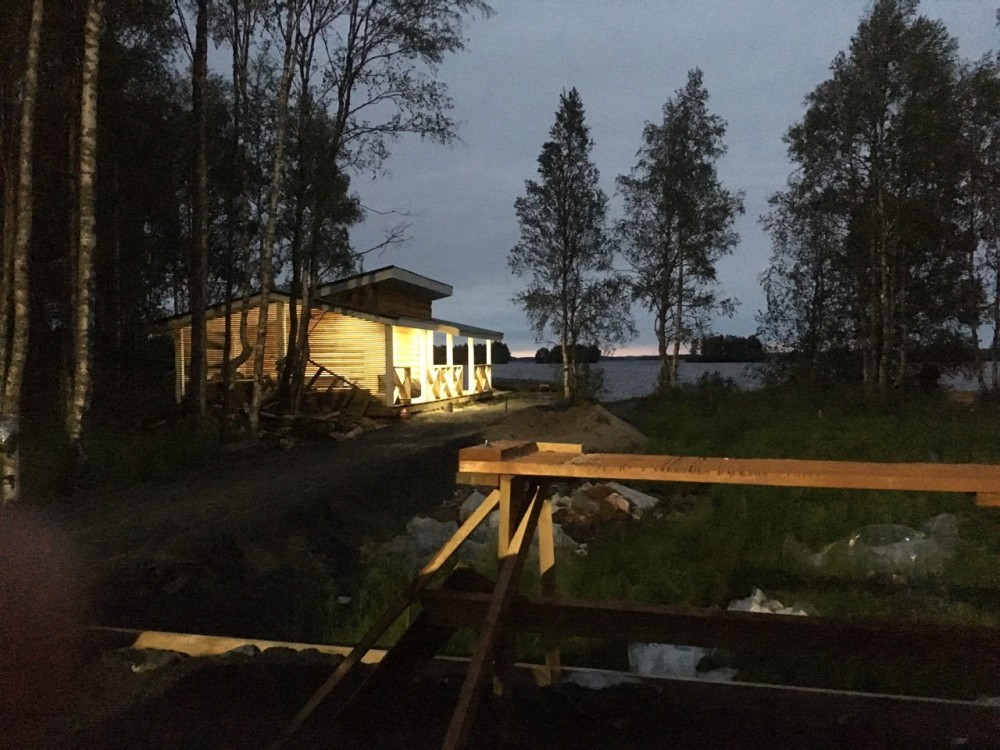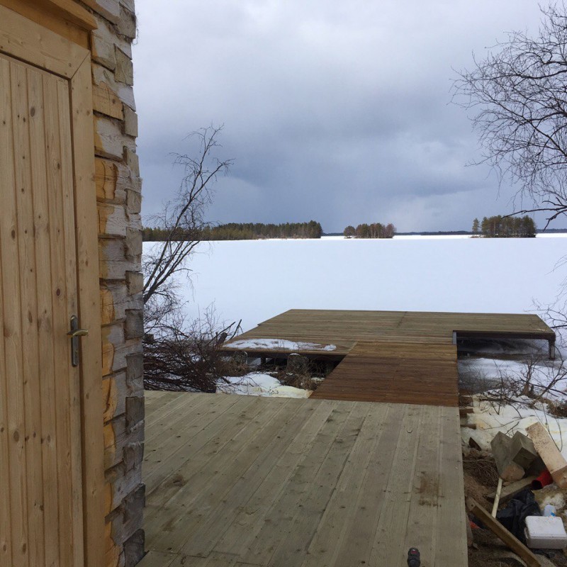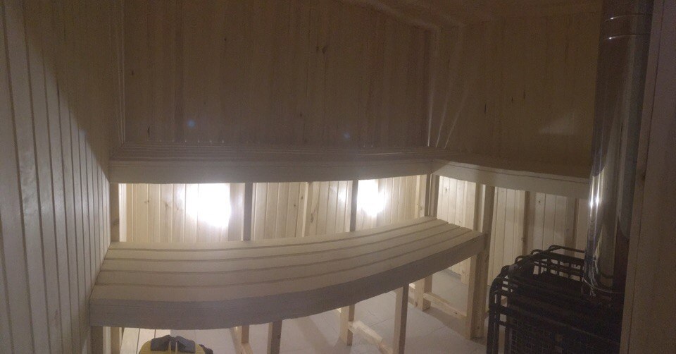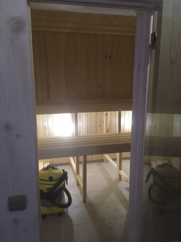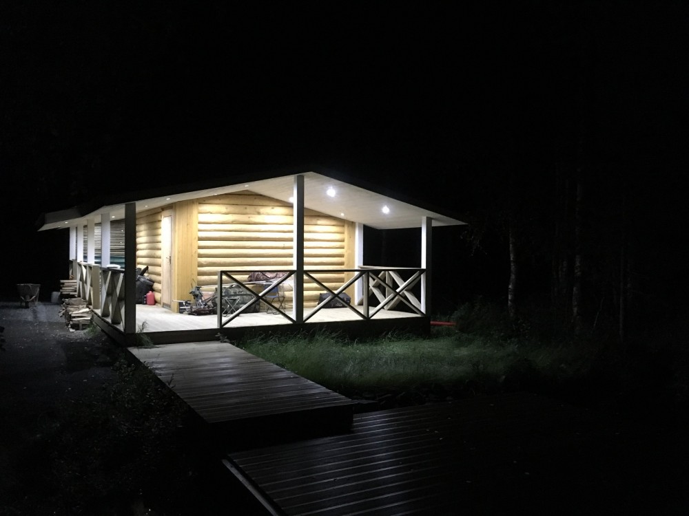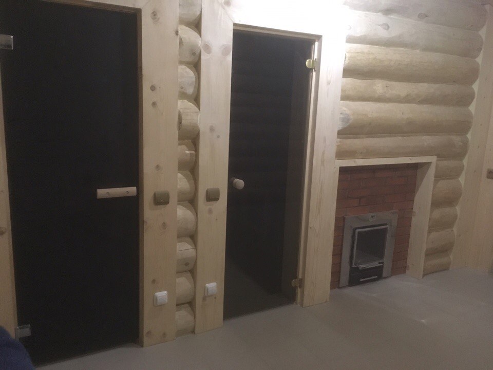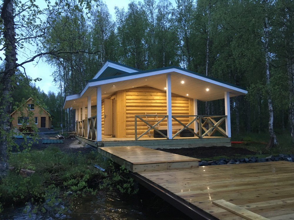 Баня на монолитной железобетонной плите из бревна с двумя пристройками террасой размером 6*3 м2 и дровяником 6*3 м2.