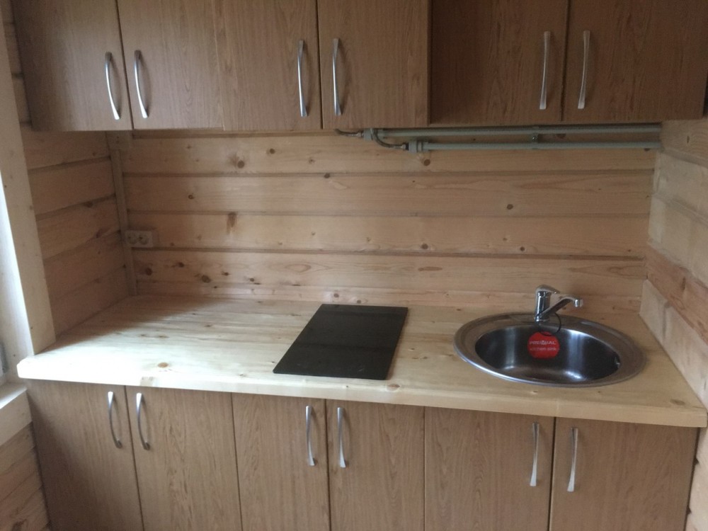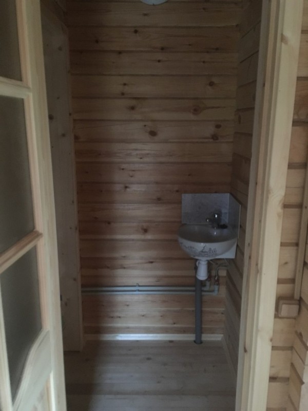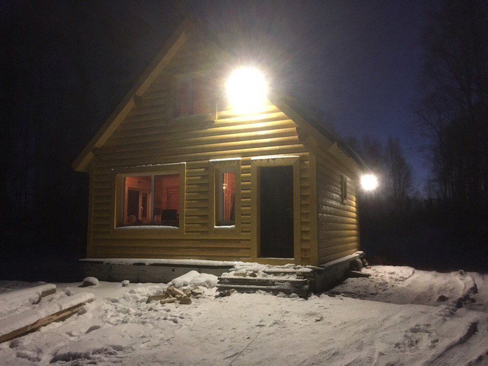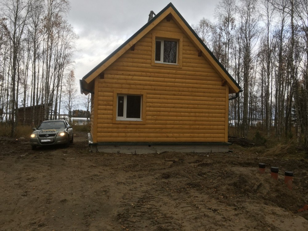 Дом на монолитной железобетонной плите из профилированного бруса 140*140 мм с наружным утеплением 100 мм и обшивкой имитацией бревна.