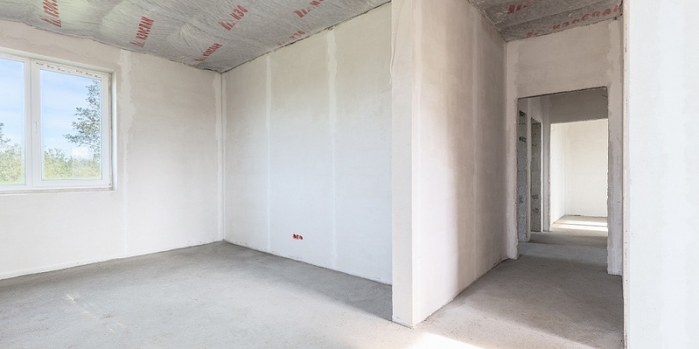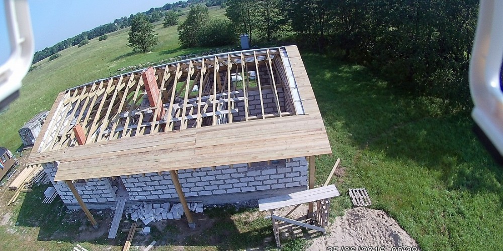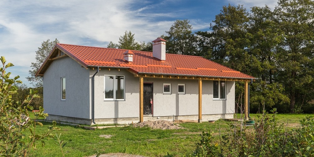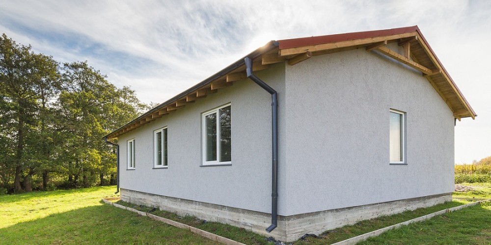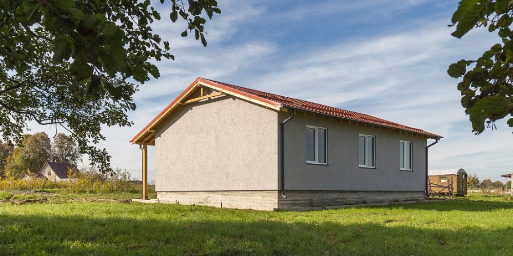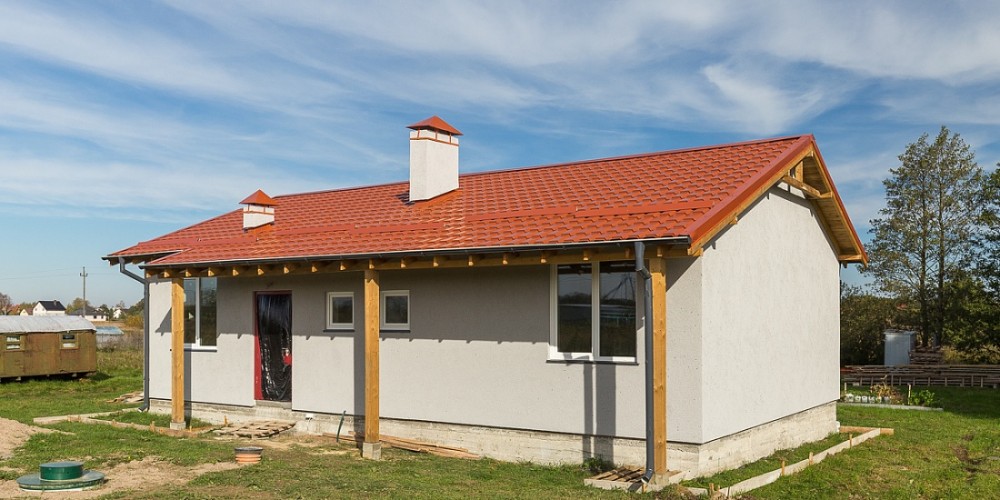 Дом построен на ленточном фундаменте из газобетона. Внешняя отделка стен выполнена фасадной декоративной штукатуркой.